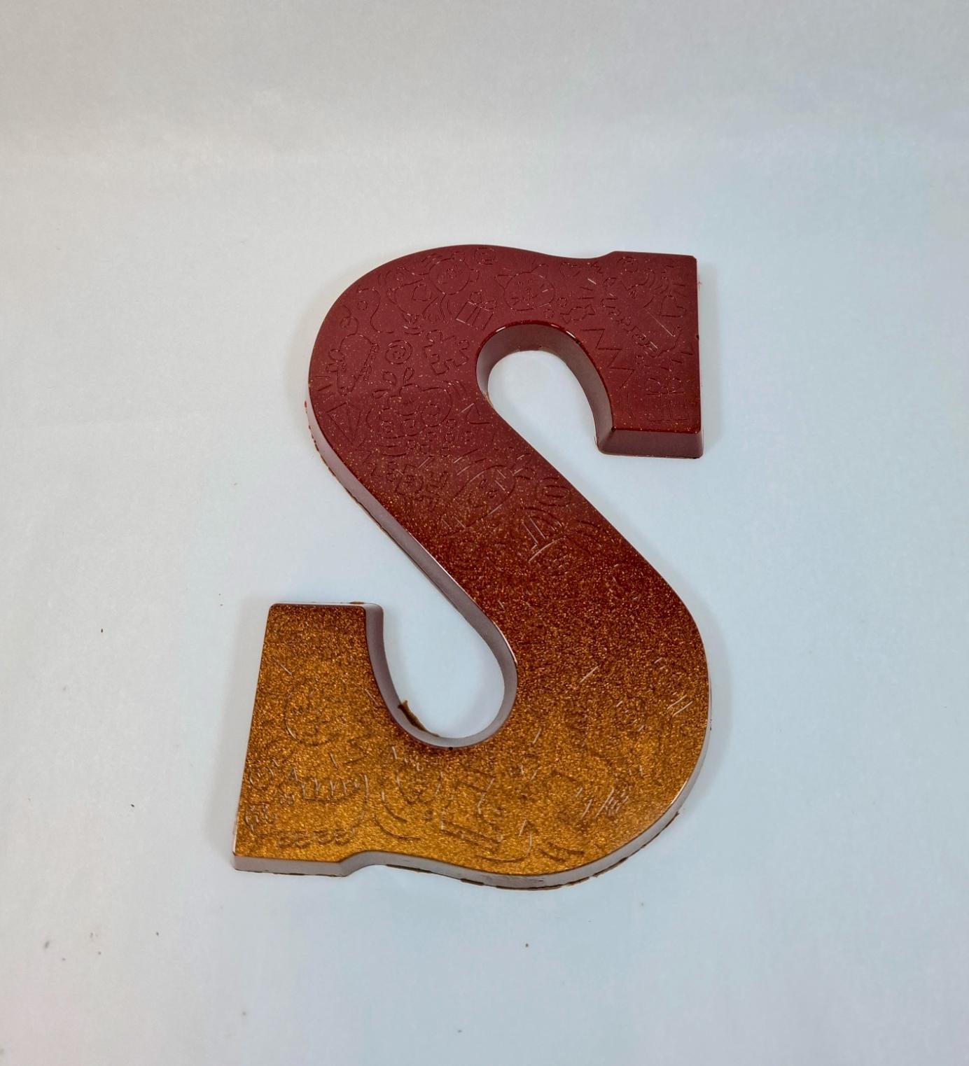 A delicious chocolate letter with Saint Nicholas decoration available in two different flavors.
