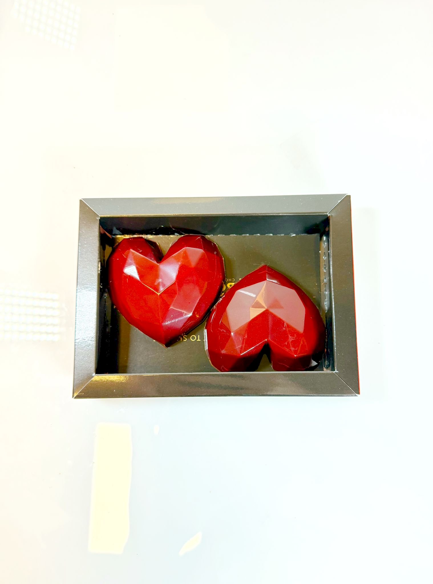 2 Hartjes gevuld met heerlijke zachte' marsmellow en aarbei in donikere chocolade